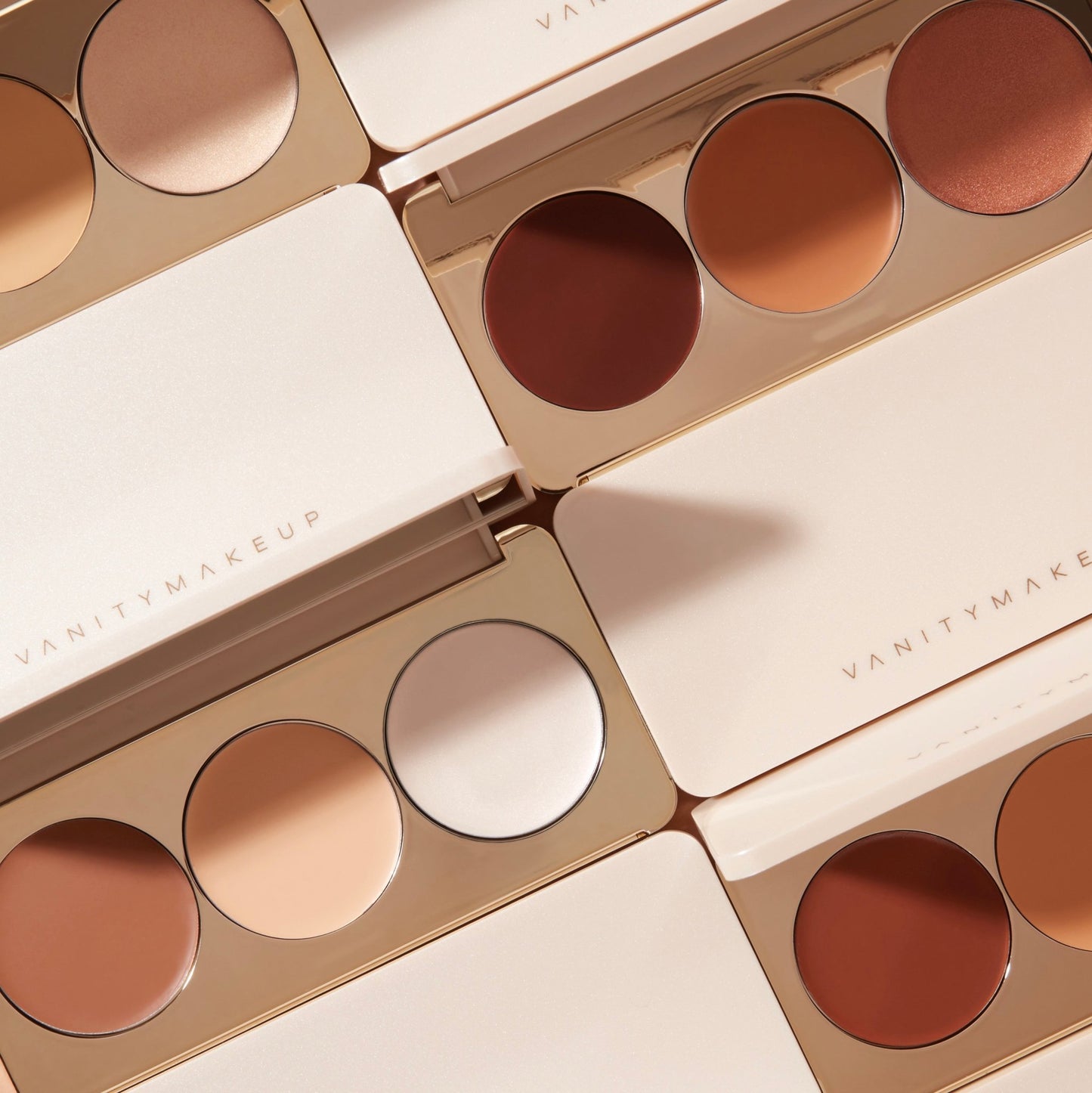 - Use the Vanity Makeup Cosmetics Face and Nose Sculpting Brushes to apply the cream products and for a seamless blend